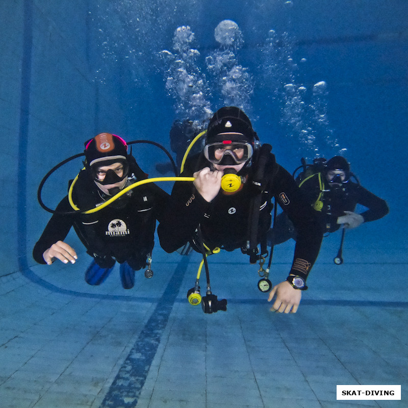 Носова Лилия, Максимихин Дмитрий, классический вариант разделения газа с напарником, используя запасной регулятор на длинном желтом шланге
