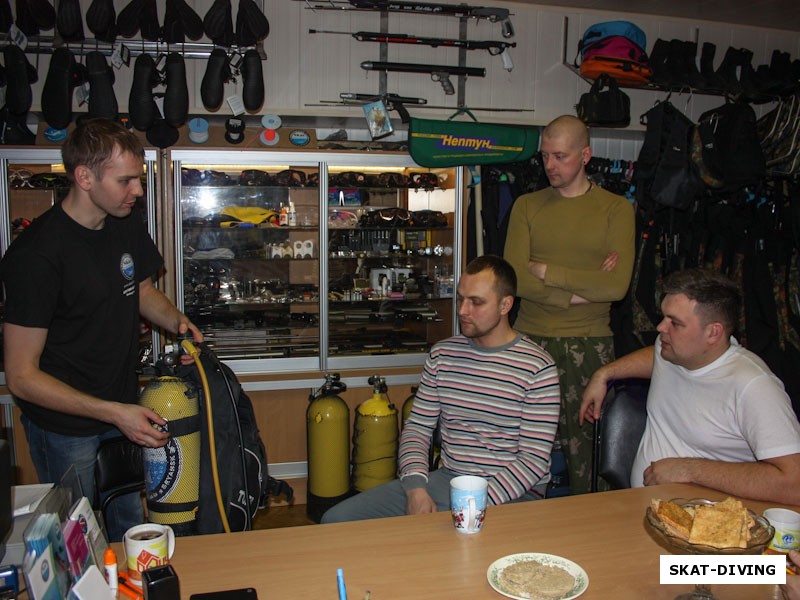 Кирюхин Роман, Федонов Артур, Шукста Игорь, Боровиков Евгений, рассказ инструктора об устройстве и особенностях акваланга был интересен всем