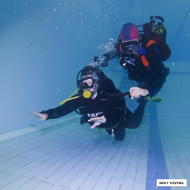 Тюрин Юрий, Парфенов Николай, Ильичев Владлен, Елисеев Кирилл, Иванина Ольга, третьего мая 2025 года в бассейне ДОСААФ инструкторы клуба "СКАТ" провели очередной интродайв для людей с ограниченными возможностями здоровья