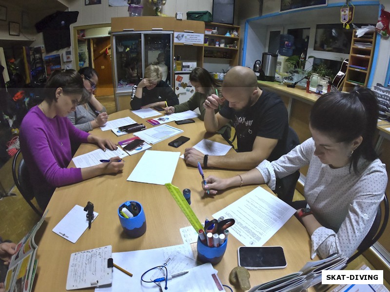 Носова Лилия, Осипенко Елена, Сельманович Татьяна, Грицева Ангелина, Балакин Александр, Балакина Татьяна, теоретический экзамен начался