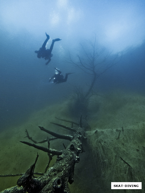 Саманцов Константин, Волков Андрей, спарка за спиной и два стейджа по бокам обеспечивают "газовую безопасность" погружения