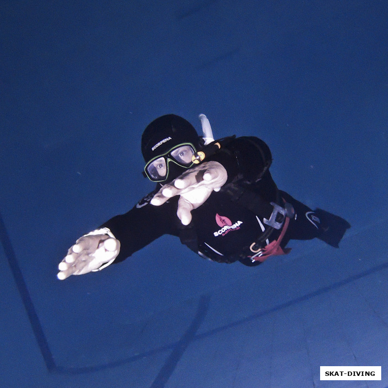 Кочанов Александр, статическая задержка дыхания выполняется на глубине 4.5 метра, на дне бассейна под контролем инструктора
