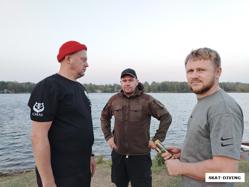 Шукста Игорь, Рябинин Александр, Ходунов Сергей, сейчас начнется брифинг с новичками по ночной нырялке