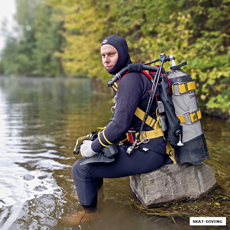 Ветров Евгений, уверенно стоит на дороге технического дайвера