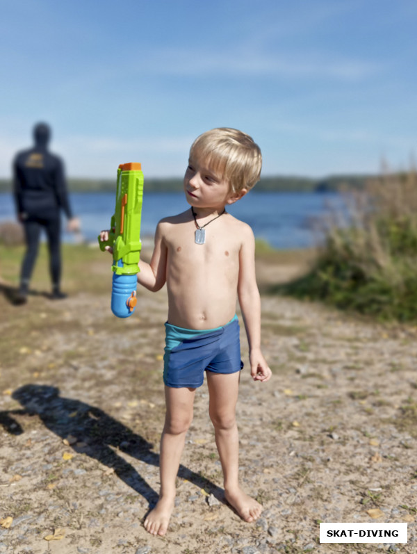 Куськин Игорь, занял удобное место для наблюдения за другими, сам уже отнырял