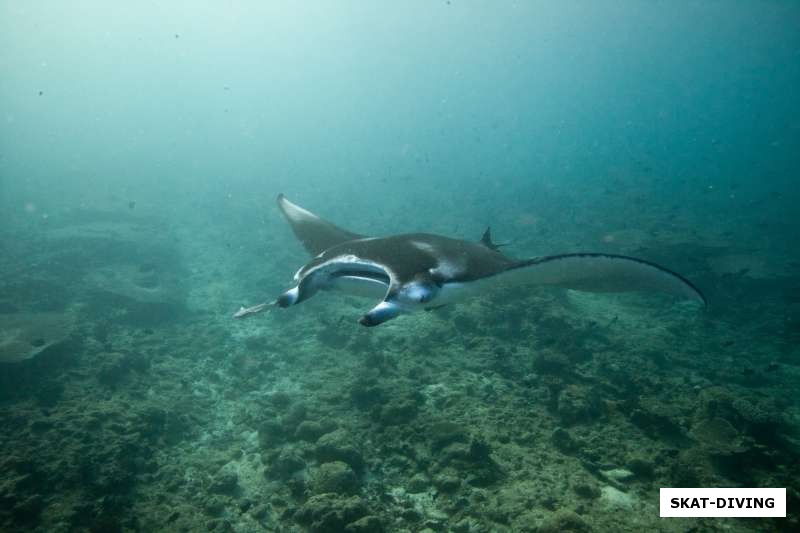 Манта с частыми спутниками рыбами-прилепалами