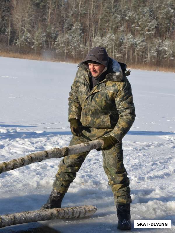 l_a r_a Тюрин Руслан, укладывает жерди на края проруби, чтобы было удобно окунаться