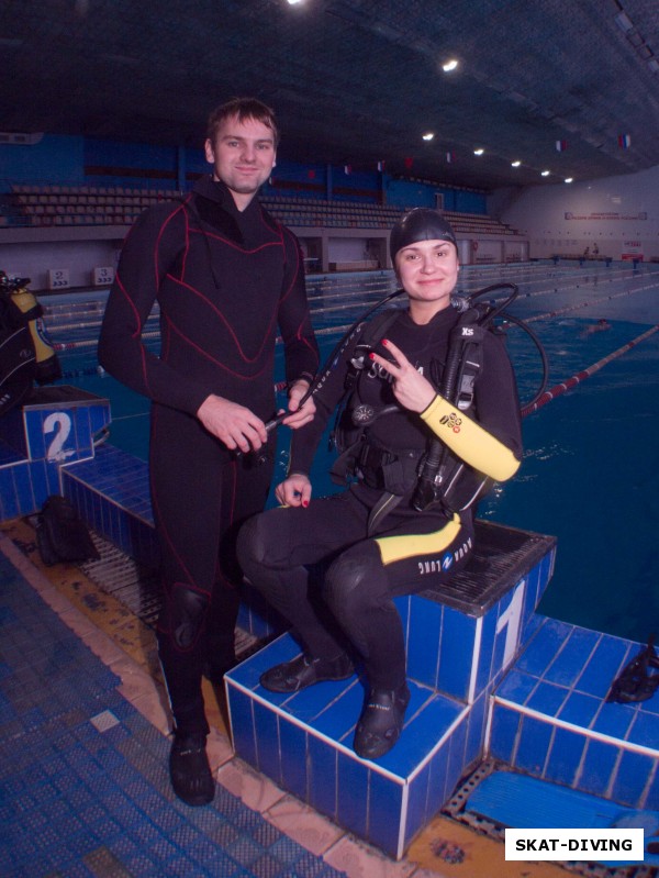 Кирюхин Роман, Богданова Олеся, медленный спуск в глубину под контролем инструктора