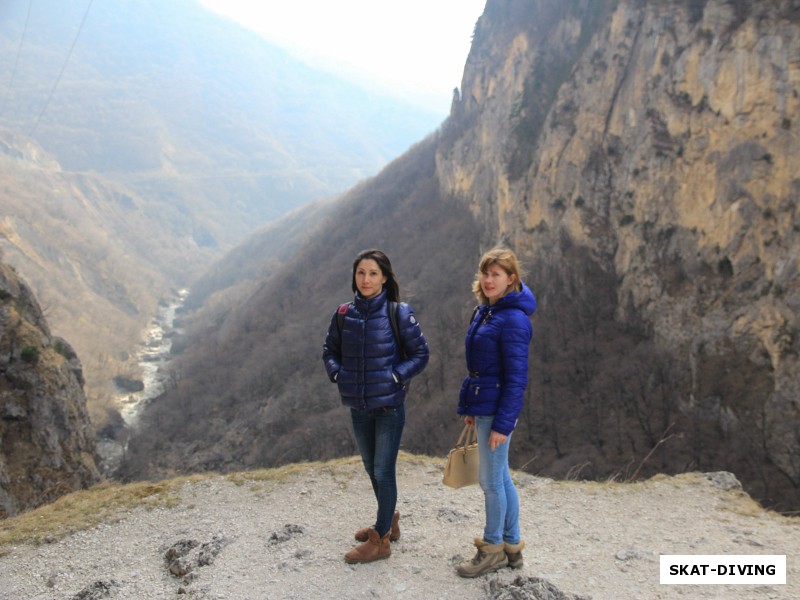 Ким Анна, Напольских Виктория, прогулка по одной из местных достопримечательностей: «Каньону», с отвесно уходящими вниз скальными свалами
