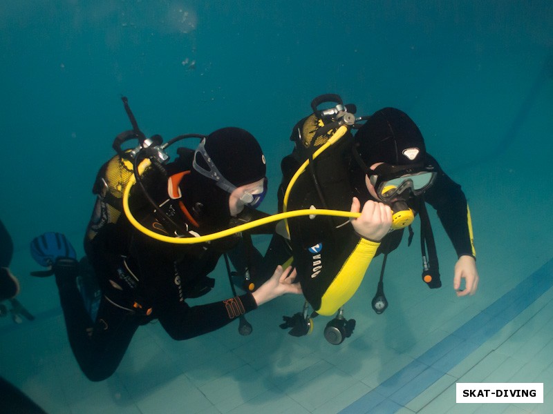 Комков Артем, Танюшин Максим, овладение навыком по разделению газа с напарником, поможет увеличить продолжительность погружения и не позволит чрезвычайной ситуации застать вас врасплох