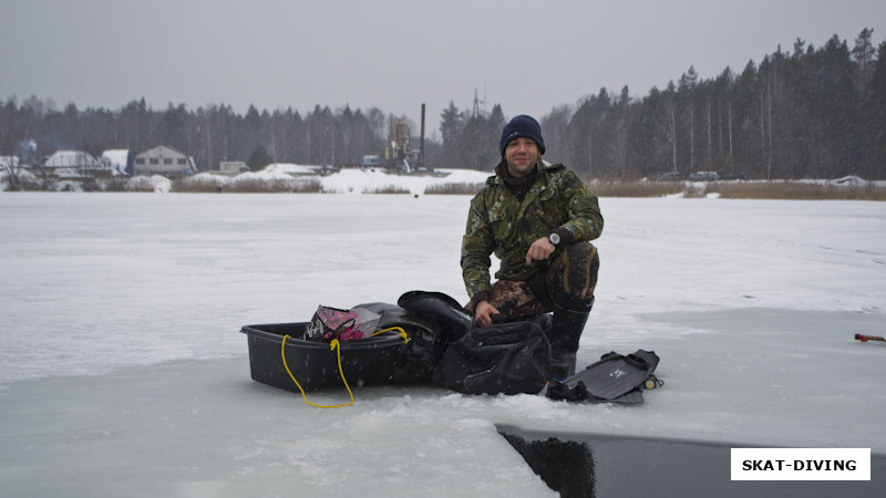 Быченков Дмитрий, ожидает напарника подо льдом